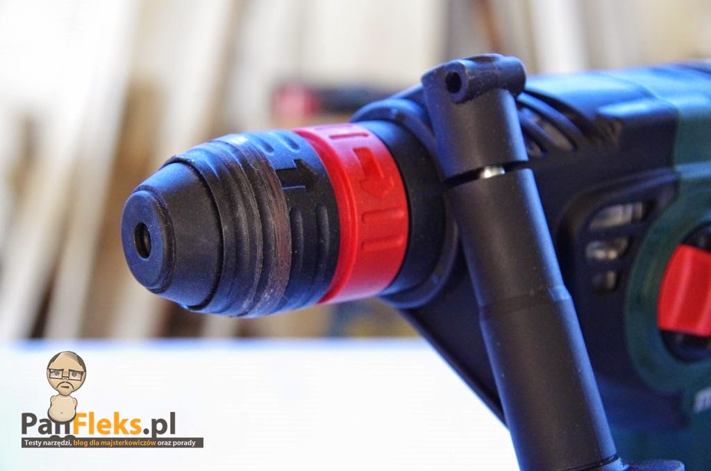 | Uchwyt SDS Plus w wersji Quick. Znaczy to tyle, że możemy bez użycia dodatkowych narzędzi go zdemontować… |