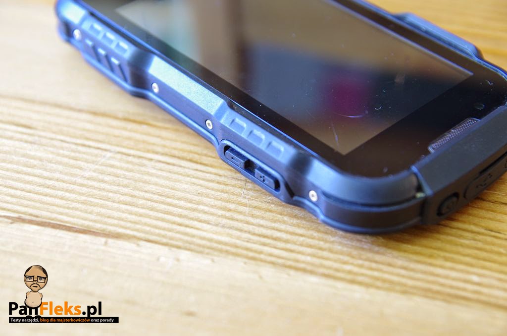 Telefon wygląda zupełnie inaczej, niż każdy smartfon, jakim posługiwałem się do tej pory. Sprawia wrażenie przedmiotu, który oprócz telefonowania może posłużyć jako podręczny młotek, a także odstraszacz delfinów – gdyby okazało się, że akurat mają ochotę na zaloty. Z przodu zobaczymy wyświetlacz pokryty taflą Gorilla Glass (przekątna 4 cale), całość zamknięta jest w obudowie z grubego, tłoczonego tworzywa, przypominającego w dotyku gumę. Każde gniazdo i guzik chroni wodoodporna klapka. Bateria znajduje się pod pokrywą przykręcaną do obudowy dwoma śrubkami. Nie ma szans, aby dostała się tam woda, bądź zanieczyszczenia.