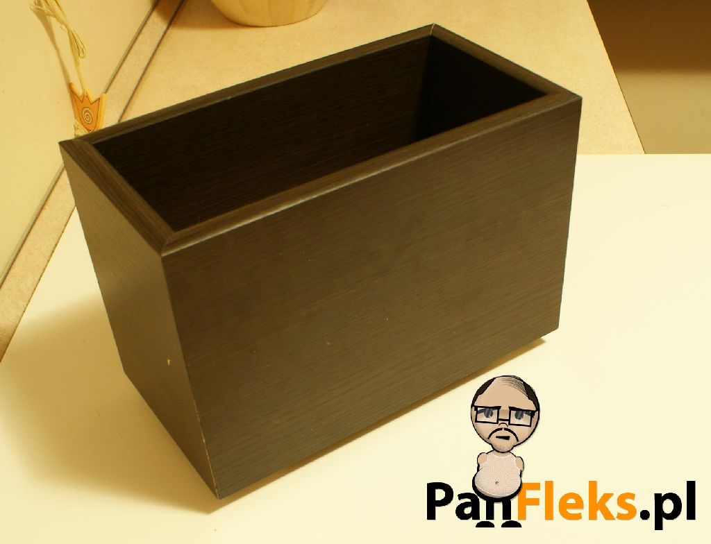 Donica, a raczej osłonka na rośliny, które są już posadzone chociażby w plastikowych pojemniczkach, miała być w założeniach bardzo prosta i estetyczna. Do jej budowy Pan Fleks wykorzystał tanie i dostępne w każdym markecie budowlanym materiały: półkę z płyty laminowanej (kolor Venge, 1200x300x16mm), świerkową kantówkę (45x45x1000mm) oraz kawałek sklejki o grubości 6 mm .