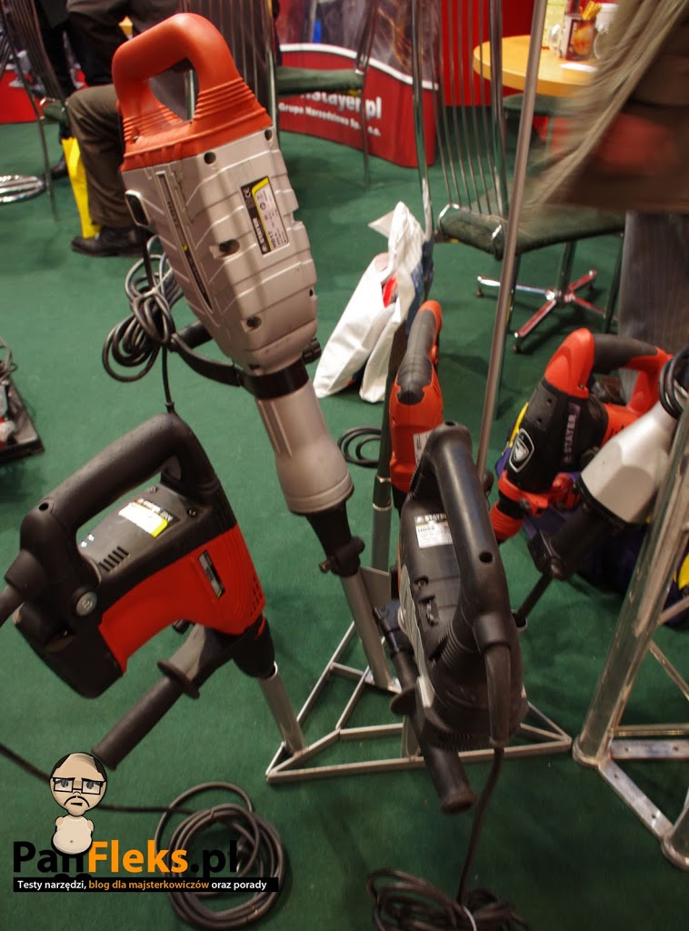 Pora przejść do tego, co tygrysy lubią najbardziej, czyli do… elektronarzędzi! Tutaj mała dygresja – na targach, oprócz wystawców, spotkamy także mnóstwo atrakcyjnych hostess. Od jednej z nich, Pan Fleks otrzymał kawałek…płyty elewacyjnej Izomaster, wielkości wizytówki. Hostesso Alufoxa – naprawdę bardzo Ci za ów upominek dziękuję!