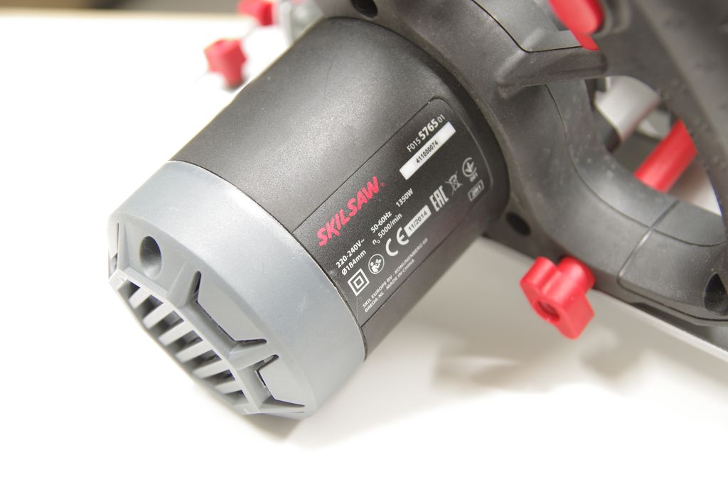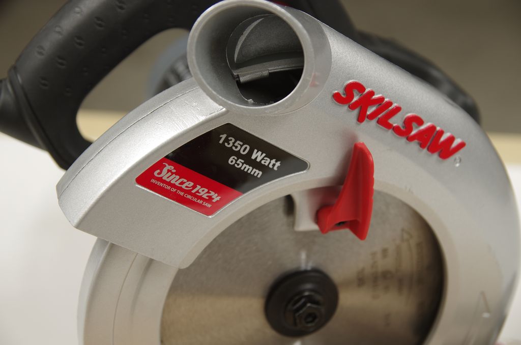 Obudowa jest wykonana ze stopów aluminium. Ciekawostką jest fakt, że takie rozwiązanie Skil wprowadził już w 1928 roku! Osłona piły ma otwór, przez który możecie podłączyć ją do odkurzacza, albo zamontować tutaj specjalny worek na pył (do kupienia osobno). Przydatnym gadżetem jest wizjer linii cięcia – dzięki niemu widzicie dokładnie rzaz, a cięcie może być dokładniejsze nawet bez użycia prowadnicy. Wizjer „działa” zarówno przy cięciu pod kątem 90 stopni jak i 45 stopni.